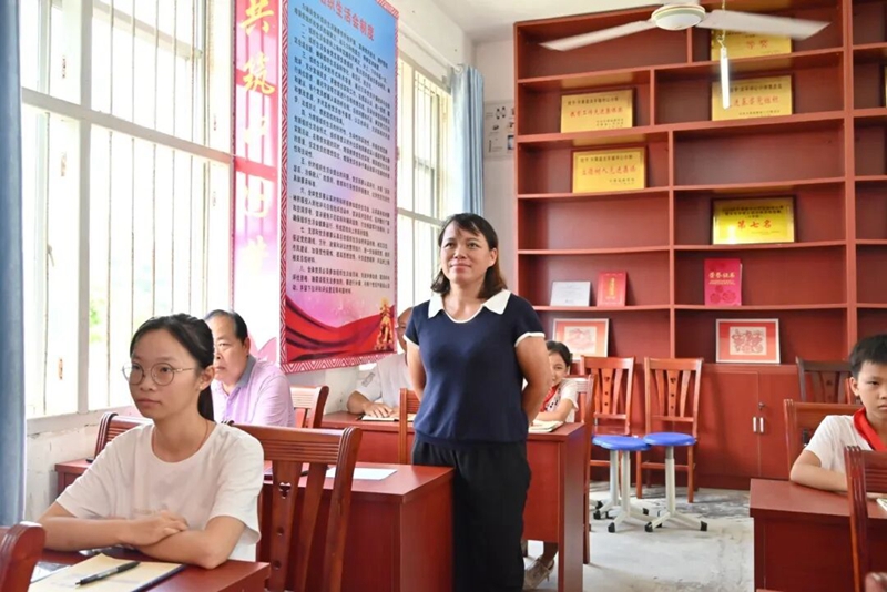 广西工程职业学院校长助理梁善雅致辞。她向太平镇中心小学的师生们表达了衷心感谢,也向为活动提供周到安排的老师们致以诚挚敬意。她表示,语言是文化的载体、沟通的桥梁。推广国家通用语言文字,既是法律赋予的责任,更是增进民族凝聚力、传承中华优秀传统文化,也能为助力乡村振兴和教育高质量发展筑牢基础。此次活动承载着三个小目标: