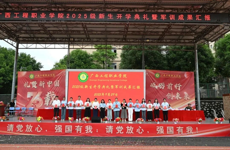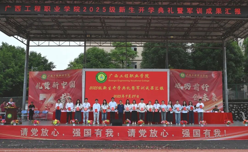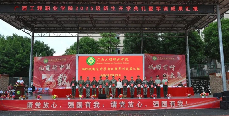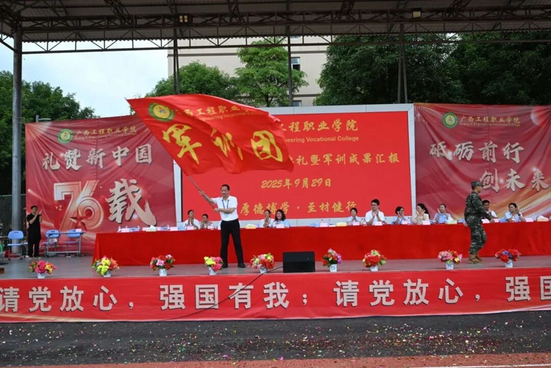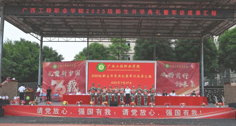 金秋迎华诞,青春展芳华。在中华人民共和国成立76周年之际,9月29日上午的校园田径场旌旗飘扬——我校2025级新生开学典礼暨军训成果汇报在此拉开帷幕。新生们身姿挺拔、整装待发,嘹亮的口号响彻云霄,既是对热血青春的告白;精彩的军训汇演整齐划一,更是向伟大祖国的深情献礼。