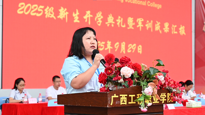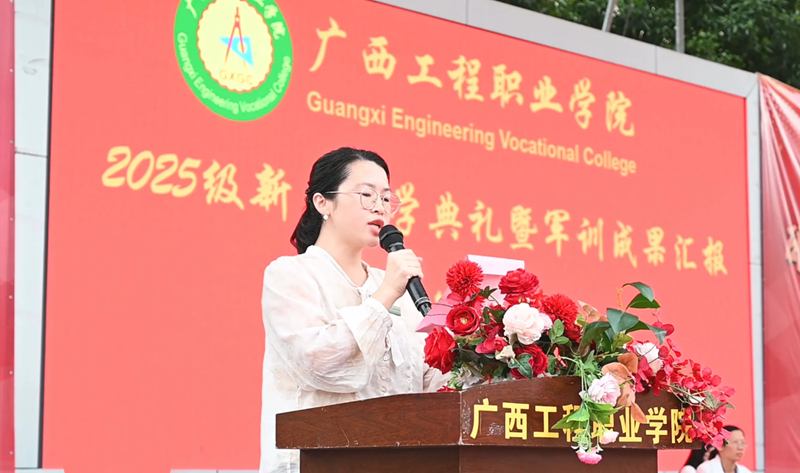 党委副书记、校长罗艳妮致辞。她首先代表学校全体教职工,向莅临本次开学典礼暨军训成果汇报现场的各位领导、嘉宾致以最热烈的欢迎和最诚挚的感谢;同时,向加入学校大家庭、成为最年轻 “工程人” 的新同学们,表达了热烈的欢迎与衷心的祝贺。