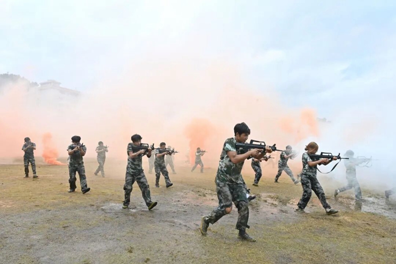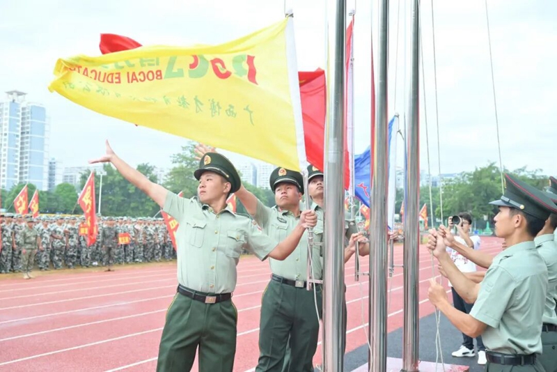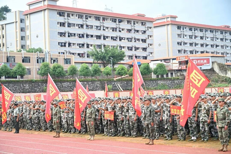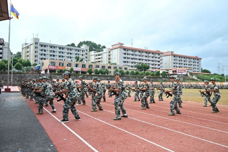 伴着嘹亮激昂的口号声,各营队伍迈着整齐有力的步伐有序入场。他们脊背挺直、身姿挺拔,眼神坚定而锐利,每一支队伍都像即将奔赴使命的钢铁劲旅,尽显昂扬气势。