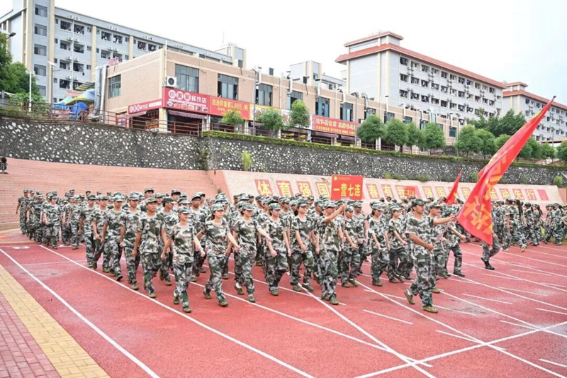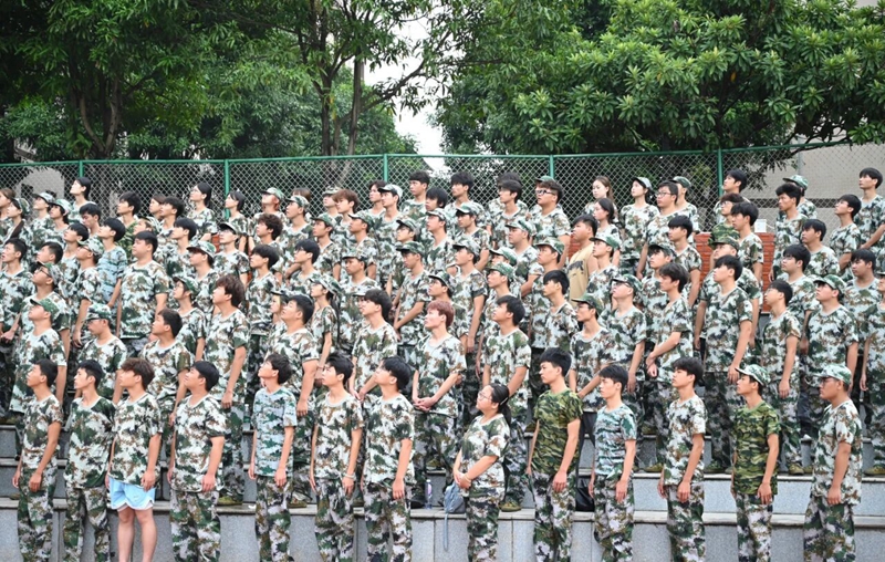 他们身姿如青松般挺拔直立,迈出的步伐规整划一,将队列的严整风采展现得淋漓尽致。“一、二、三、四” 的口号声由众人齐声喊出,嘹亮得响彻云霄;每一个动作都流畅利落、充满力量,既展现出军训的丰硕成果与满满收获,更生动诠释了 “少年强则国强” 的深刻内涵。