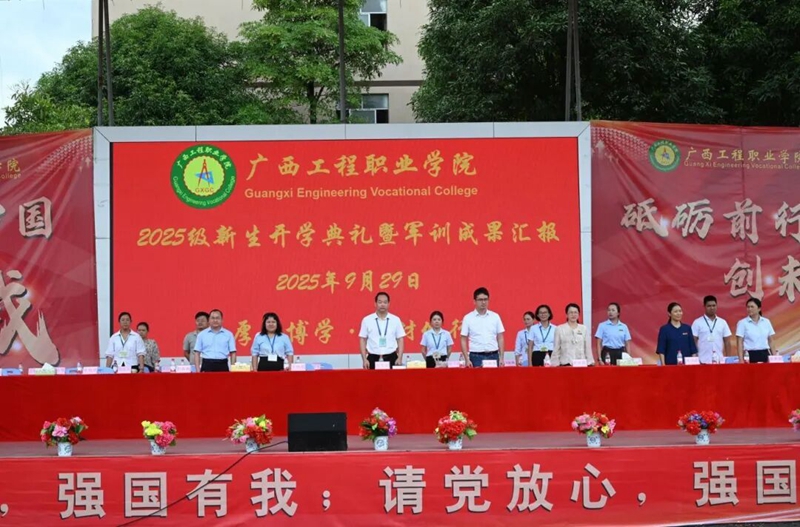 平果市大学园区管理服务中心副主任农瀚翔,学校党委书记、政府督导专员蒙本曼,党委副书记、校长罗艳妮,党委副书记黄秋霞,纪委书记、副校长彭高彬,副校长黄德伟、蒋茂丽,校长助理李明泽、梁善雅等校领导班子成员出席大会;学校相关职能部门负责人、党支部副书记、分团委书记、办公室主任、2025级新生辅导员及2025级全体学生参加大会。