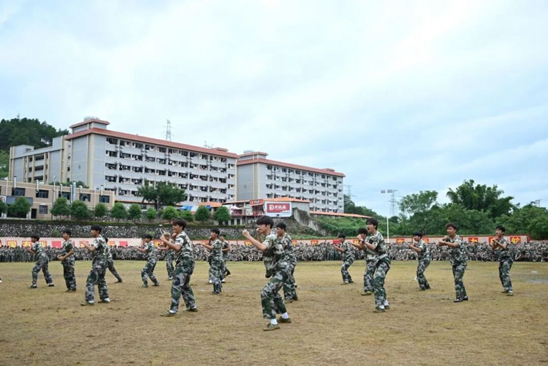 每一招式都刚劲沉稳、不含半分拖沓,每一拳脚皆虎虎生风、满是力量,再配上一声声磅礴震天的呐喊,精彩的表现里尽显少年的血性与胆气,更将军训的扎实成果充分展现。