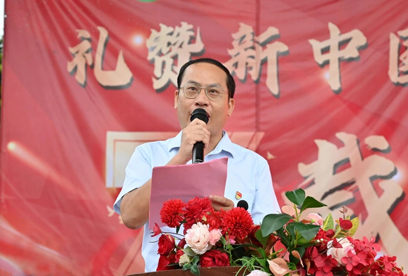 庄严的国歌声响起,每一个音符都凝聚着赤子深情,五星红旗迎着晨光缓缓升起,映红了在场每个人的脸庞。全场静立,行注目礼,在这肃穆而神圣的氛围中,共同庆贺新中国76华诞。从这面旗帜下出发,大家心往一处想、劲往一处使,必将携手开启充满希望的新征程,用实干与担当书写属于新时代的精彩篇章。