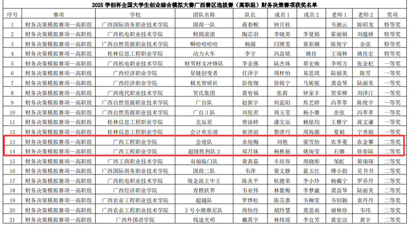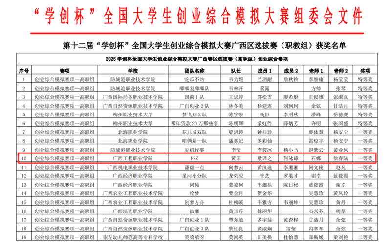喜讯 | 我校学子在2025年“学创杯”全国大学生创业综合模拟大赛广西赛区选拔赛(职教组)荣获佳绩