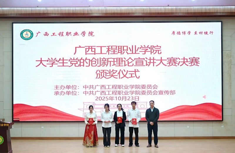 从生动案例到深刻阐释,从青春视角到使命担当,本次大赛为校园文化注入了浓厚的理论色彩与思想活力,成为推动党的创新理论“入耳、入脑、入心”的生动实践。学校将以此次大赛为新起点,持续搭建理论学习与实践宣讲的桥梁,引导青年学子成为党的创新理论的坚定信仰者、积极传播者、忠实实践者,为培养担当民族复兴大任的时代新人注入更强劲的思想动能,在新时代征程上书写属于广工程院的青春答卷。