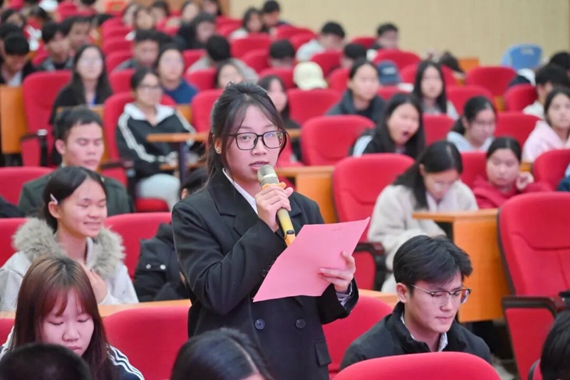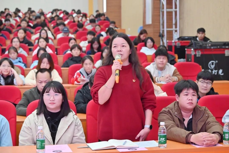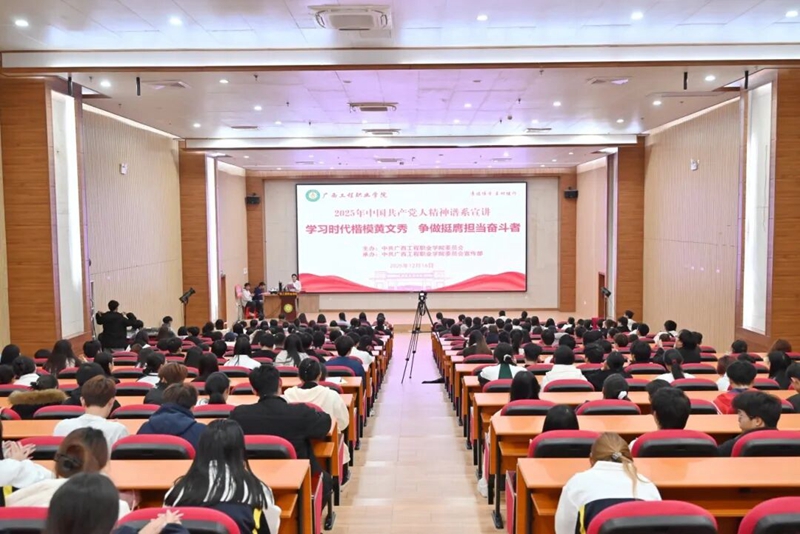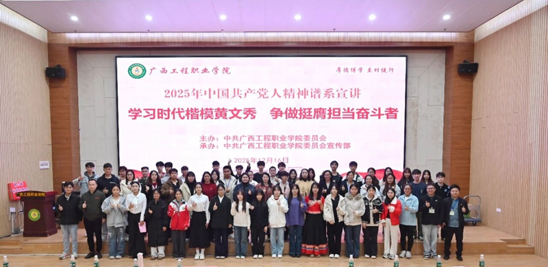 12月16日下午,广西工程职业学院“学习时代楷模黄文秀,争做挺膺担当奋斗者”“中国共产党人精神谱系”宣讲活动在图文信息大楼一楼学术报告厅举行,活动旨在通过鲜活的艺术呈现和真挚的思想交流,深入学习时代楷模黄文秀同志的崇高精神,从中国共产党人精神谱系中汲取奋进力量,激励广大师生勇担时代使命,砥砺奋进。