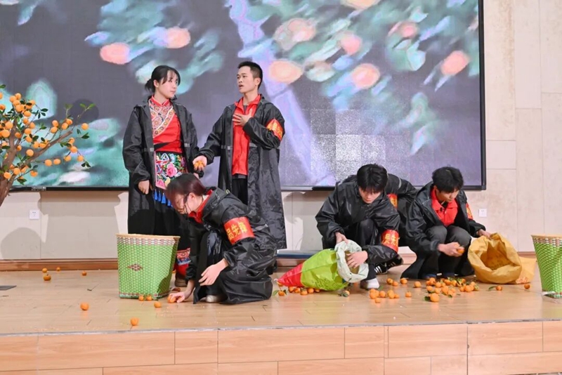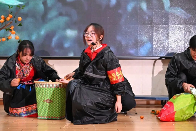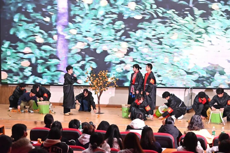 活动的核心环节是情景剧《大山的女儿》展演。我校师生以精湛的演技,生动再现了黄文秀同志主动请缨扎根百坭村,扎根脱贫攻坚一线,用脚步丈量民情、用实干赢得民心的感人历程。从走村串户绘制“脱贫攻坚战役图”,到带领村民发展砂糖橘等特色产业增收致富;从与村民促膝长谈解难题,到坚守初心直至生命最后一刻,舞台上的每一个场景、每一句台词都饱含深情,精准复刻了黄文秀同志“不获全胜、决不收兵”的坚定信念,深深打动了现场每一位观众,不少师生热泪盈眶,现场多次响起热烈的掌声。