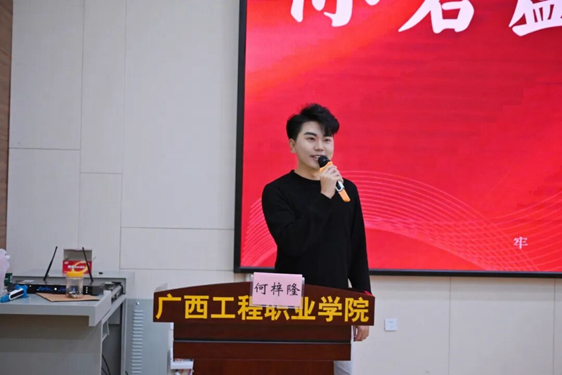 他衷心感谢广西工程职业学院这片沃土,始终以厚重的底蕴孕育人才,以宽广的胸怀滋养学子,为每一位追梦人搭建施展才华的舞台、铺就成长成才的阶梯。何梓隆真诚致谢:“感恩母校的悉心栽培与深切信任,愿广大青年学子皆能以榜样为帆,以信仰为舵,筑牢理想根基,脚踏实地求索,奋勇向前追梦,在时代浪潮中执笔挥毫,书写属于自己的璀璨青春华章。”