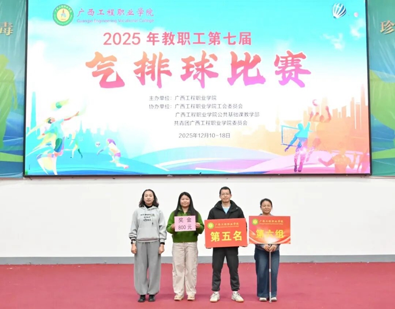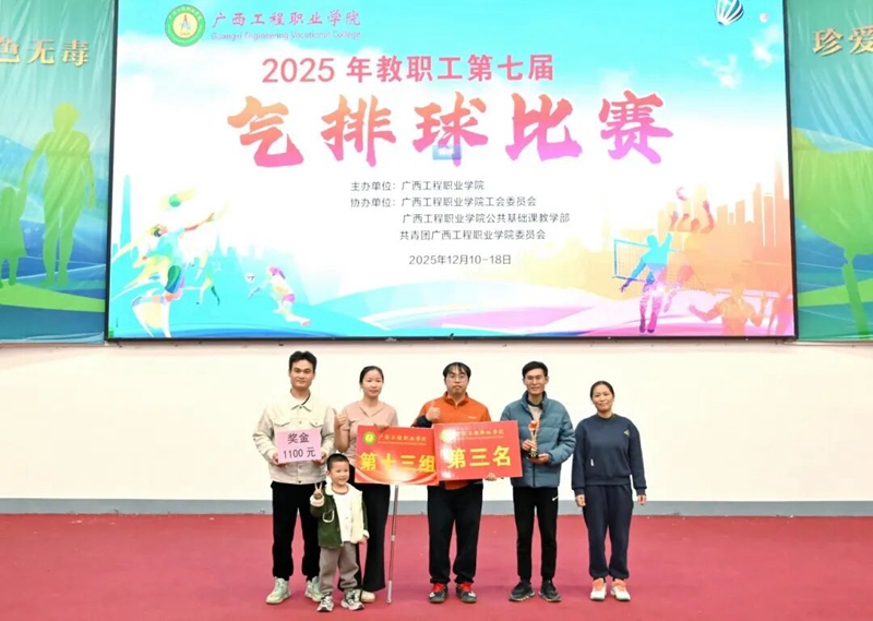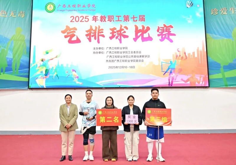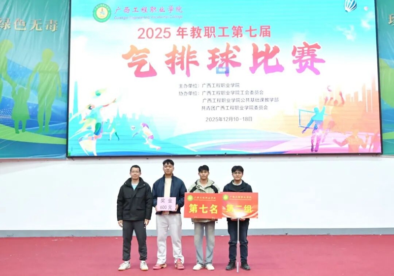 为丰富教职工课余生活,增强团队凝聚力,营造健康向上的校园氛围,2025年12月10日-12月18日,广西工程职业学院举办第七届教职工气排球比赛,经过多轮激烈角逐,参赛教职工们以饱满热情赛出风格、赛出水平,为全校师生呈现了一场场精彩绝伦的赛场对决。