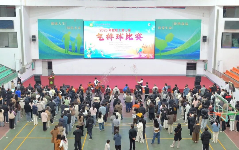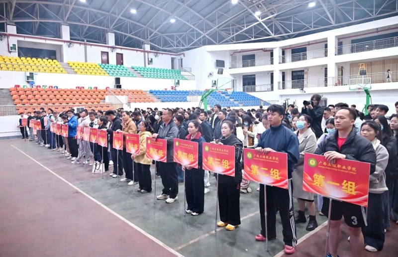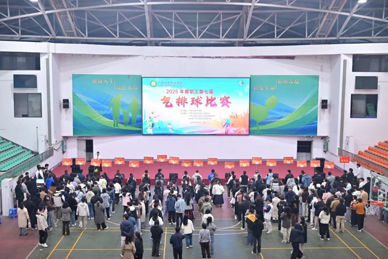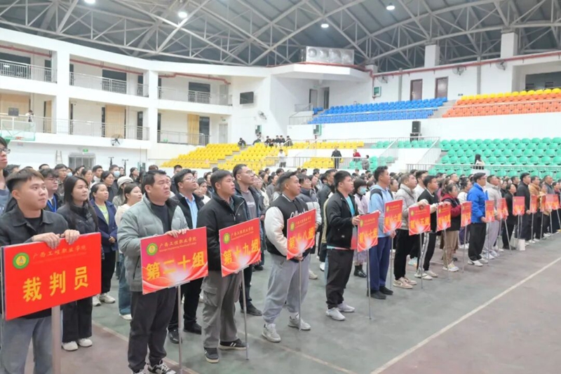 2025年12月10日,广西工程职业学院第七届教职工气排球比赛开幕式在体育馆举行。