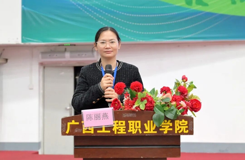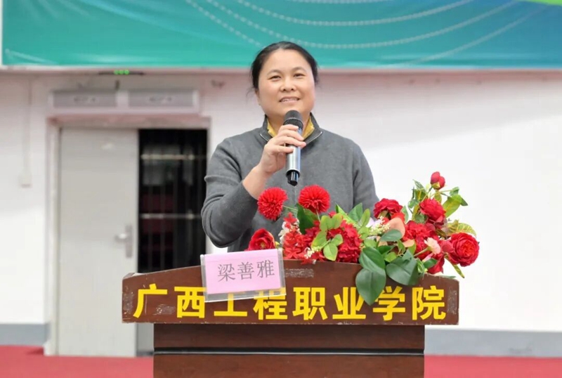 副校长梁善雅宣布广西工程职业学院第七届教职工气排球比赛正式开始。