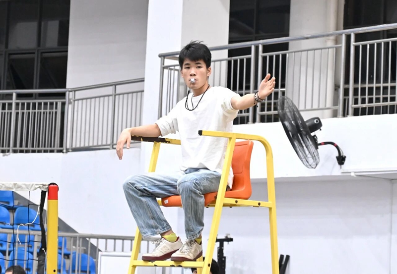 裁判员代表潘积豪宣誓,他代表全体裁判员庄严宣誓:恪守体育职业道德,遵守竞赛规则与裁判纪律,秉持 “公平、公正、公开” 的原则,以专业的裁判素养、严谨的工作态度,精准执裁、秉公裁决,不偏不倚、不徇私情。尊重每一位运动员的付出,尊重比赛、尊重规则、尊重观众,全力维护赛场秩序与竞赛公平,为本次教职工气排球比赛保驾护航,确保赛事顺利进行。