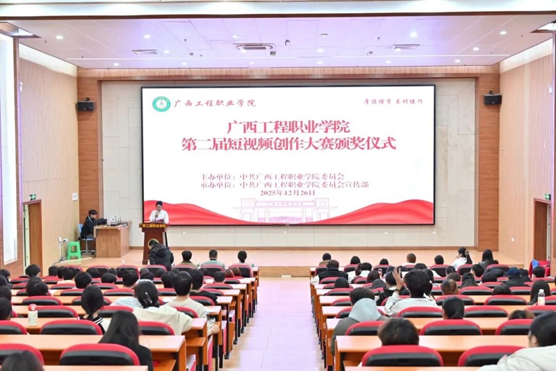 近日,广西工程职业学院“遇见工程,青春最young”——第二届校园短视频创作大赛颁奖仪式在图文信息大楼一楼学术报告厅举行。学校党委宣传部、新闻中心负责人及部门教师代表,各二级学院、学生社团代表参加颁奖仪式。