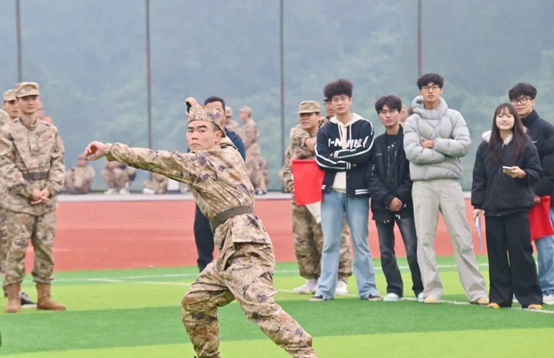 手雷投掷赛场上,队员们沉着冷静,动作规范,投掷精准,以绝对优势再夺第一名,赢得了现场阵阵喝彩。