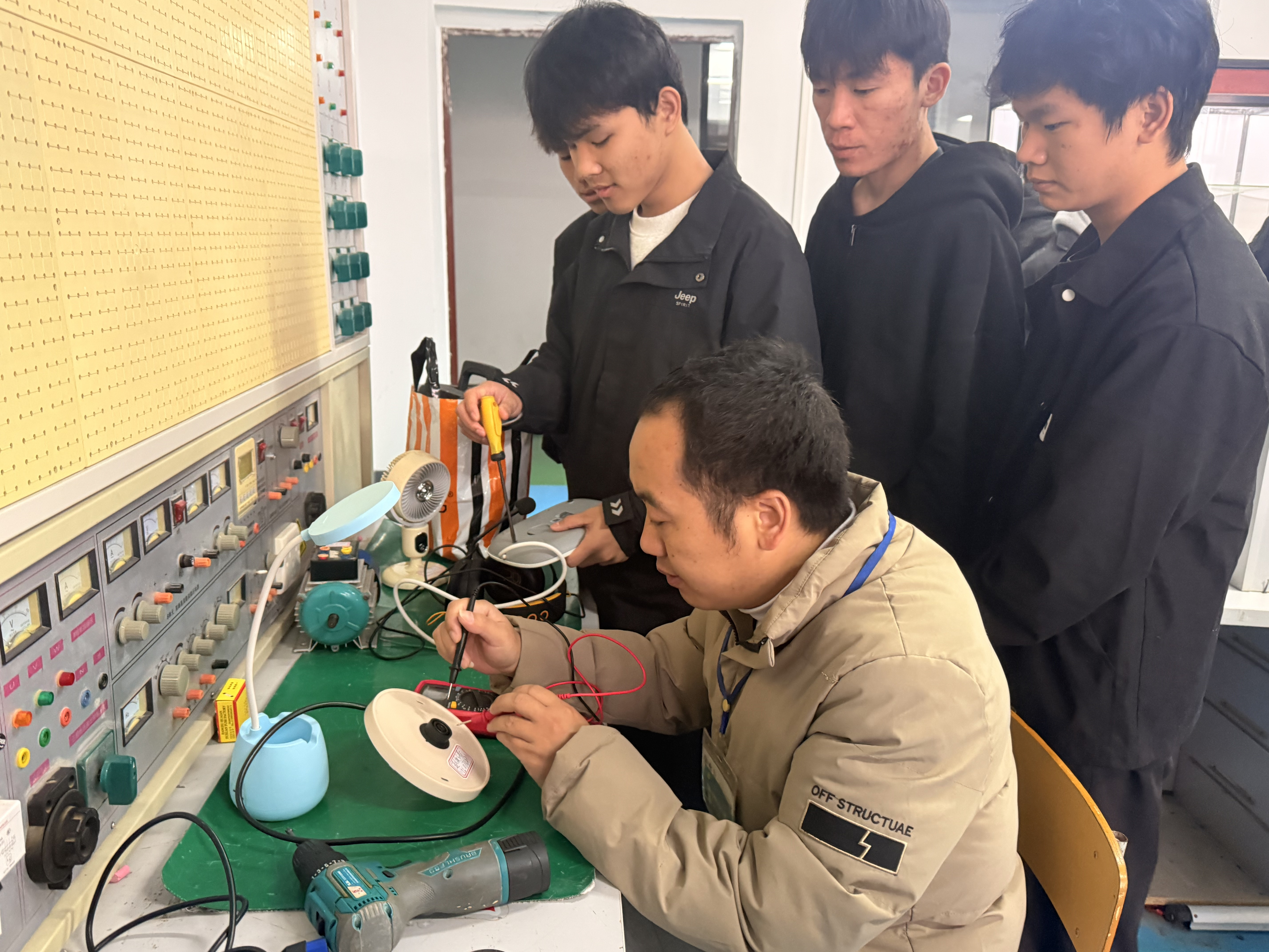 活动当日,学院精心布置的服务点早早便迎来了带着故障家电前来咨询的师生。电风扇、电热水壶、电饭煲、微波炉、台灯等各类小家电在服务台前有序摆放。由学院专业教师带队,来自电气自动化技术等专业的技术骨干学生组成的维修团队,细致询问故障现象,并熟练地运用万用表、电烙铁、螺丝刀等专业工具进行检测、诊断与维修。