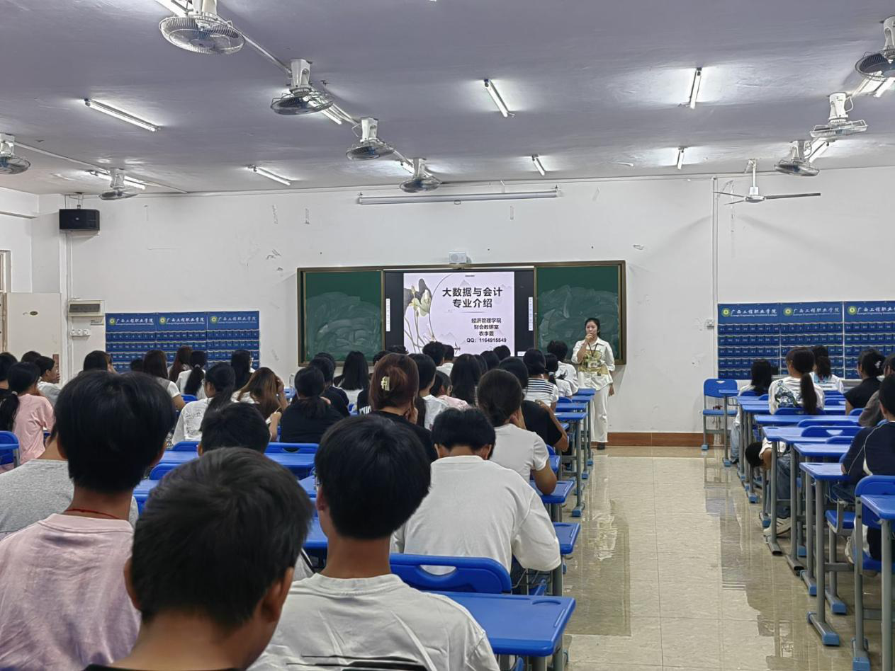 图为学院教师农李菱对2025级大数据与会计专业学生进行专业介绍