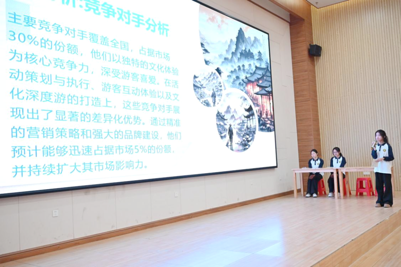 图为市场营销技能比赛“非遗旅游”团队成员展示项目