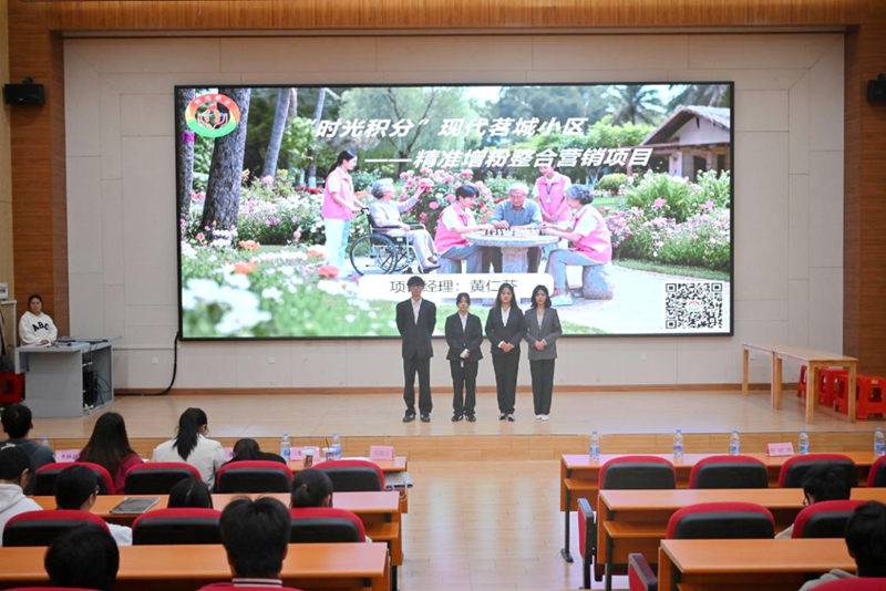 图为市场营销技能比赛“时光积分”团队成员展示项目