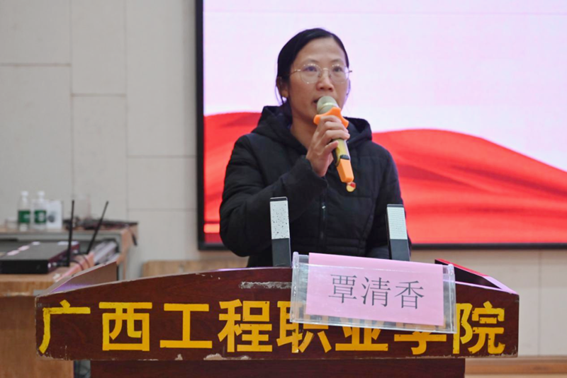 图为经济管理学院党支部书记、院长覃清香为大赛开幕式致辞