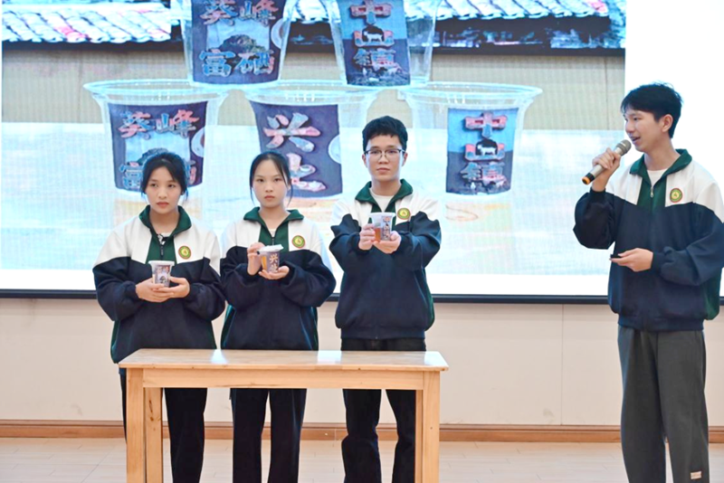 图为市场营销技能比赛“兴业富硒茶推广”团队成员展示项目