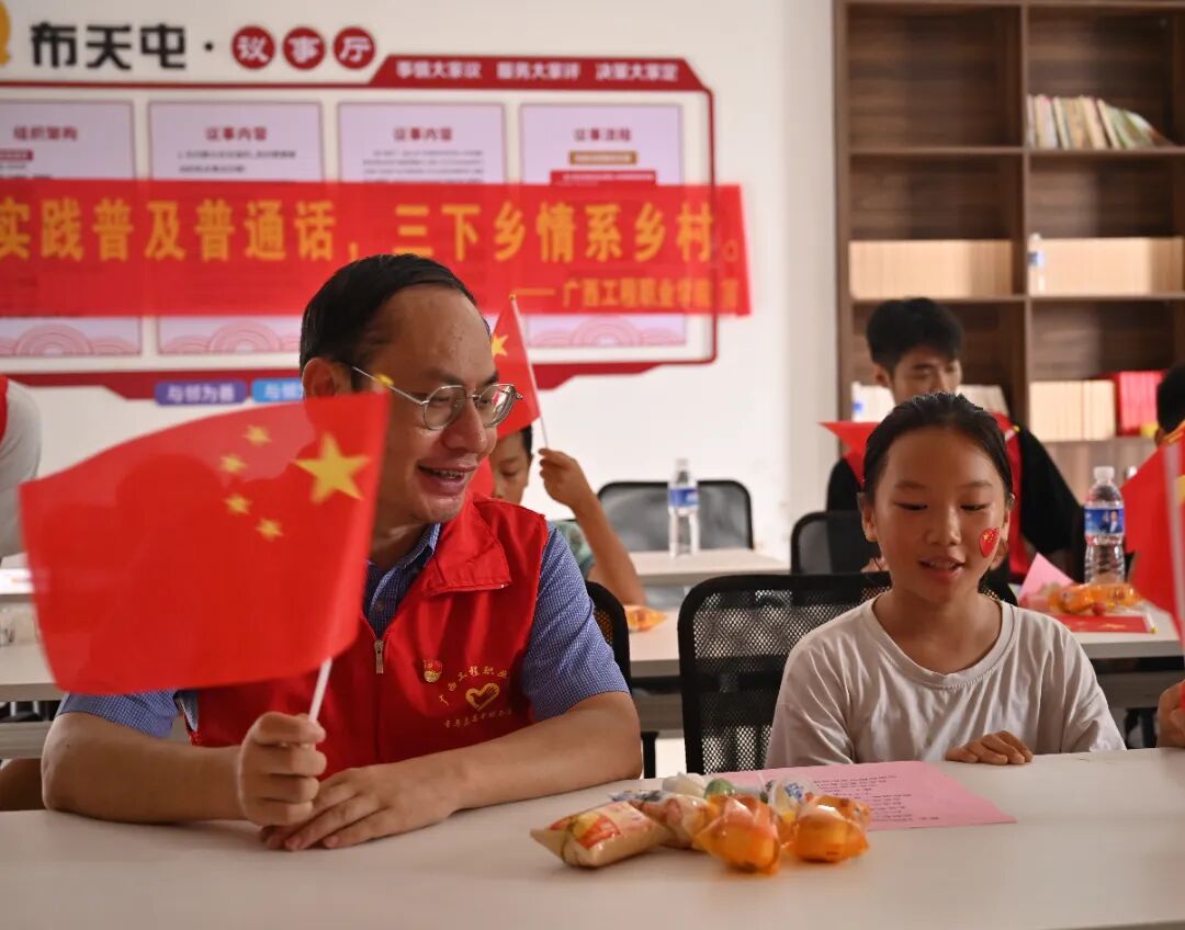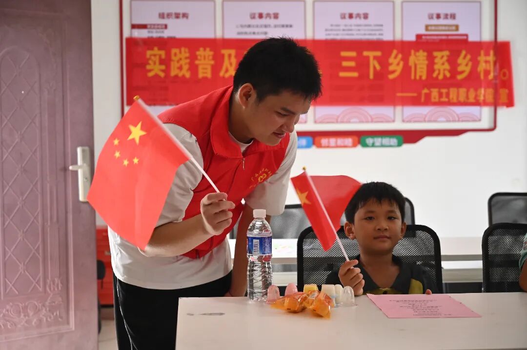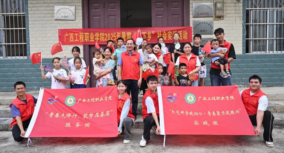 2025年7月14日,广西工程职业学院“红色研学践初心·青春聚力促振兴”实践团、广西工程职业学院“青春先锋行,筑梦在基层”服务团走进平果市马头镇布夭屯开展“七彩画笔绘乡村,三下乡情暖童心 ”等特色暑期“三下乡”社会实践活动。通过“田间课堂”“童声颂祖国”等特色活动的开展,将语言文化教育与劳动实践相结合,为乡村儿童带来丰富多彩的活动,以实际行动助力乡村文化振兴。