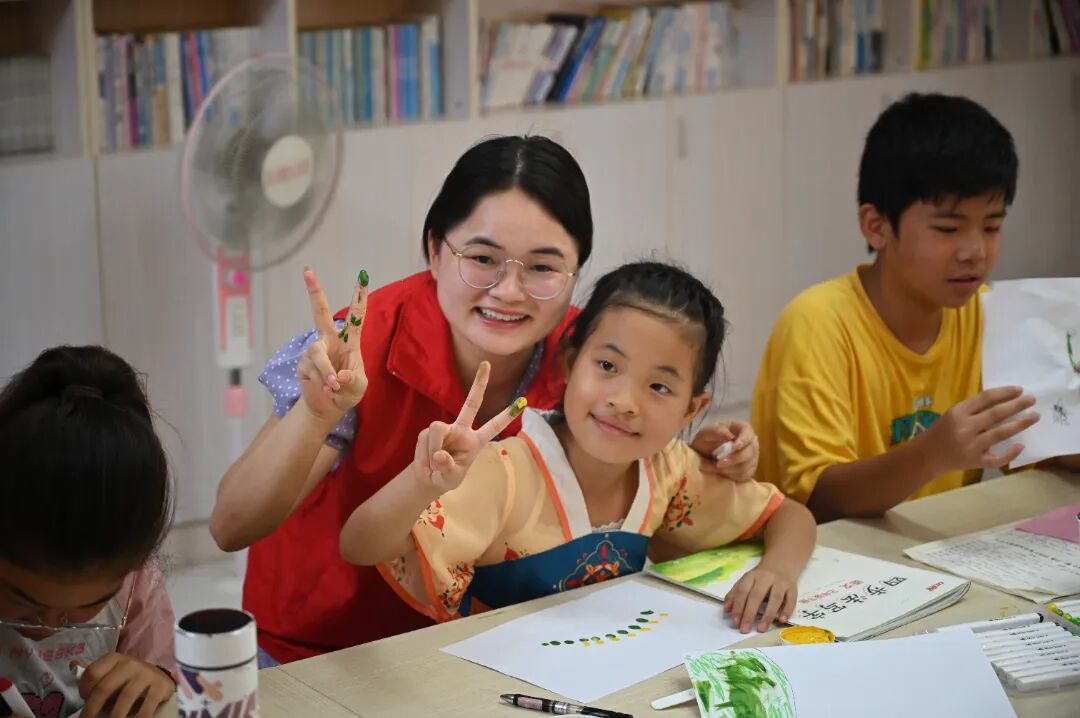 志愿者们在一旁认真指导,耐心解答孩子们的问题,与他们一起分享绘画的快乐。