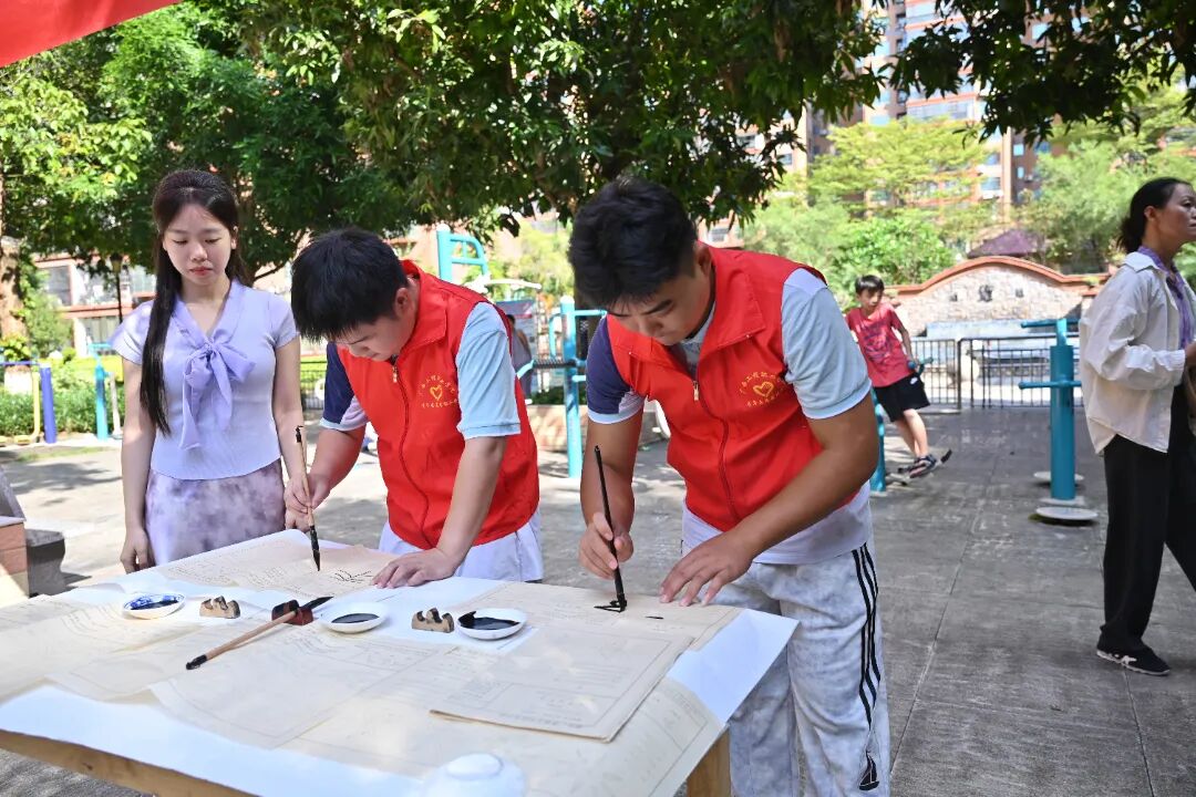 为进一步弘扬 “奉献、友爱、互助、进步” 的志愿服务精神,营造和睦、文明和谐的社区氛围,2025年8月28日,团委组织开展社区志愿服务活动。活动现场,志愿者们热情满满、积极行动,以 “笔墨传情” 为核心开展书法文化互动——他们铺展宣纸、研磨调墨,不仅手把手教社区居民握笔运笔的技巧,还结合大家需求书写寓意美好的短句与祝福。这场充满文化气息的志愿活动,既为社区注入了温暖活力,更在笔墨流转间拉近了邻里距离,生动彰显出社区互助友爱的和谐图景。