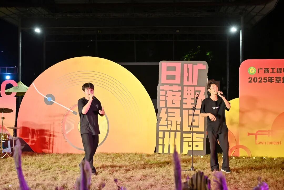 9月22日傍晚,广西工程职业学院田径场的绿茵坪上星光乍现——由校艺术团倾力打造的2025 草地音乐节如约而至。晚风轻拂间,音符与荧光交织成海,为刚结束军训训练的新生们送上了一场浸润心灵的青春盛宴,更让新老生在旋律中完成了一场温暖的文化对话,以青春之声礼赞祖国华诞,让奋进节拍与国庆欢歌同频共振。
