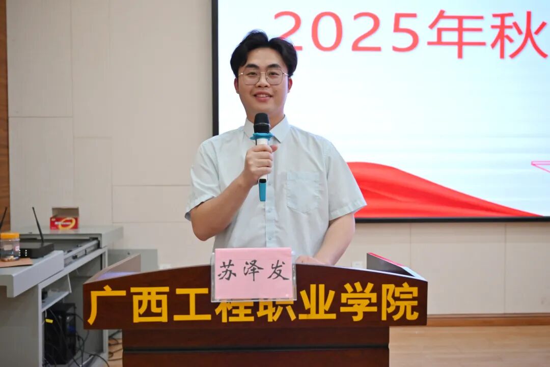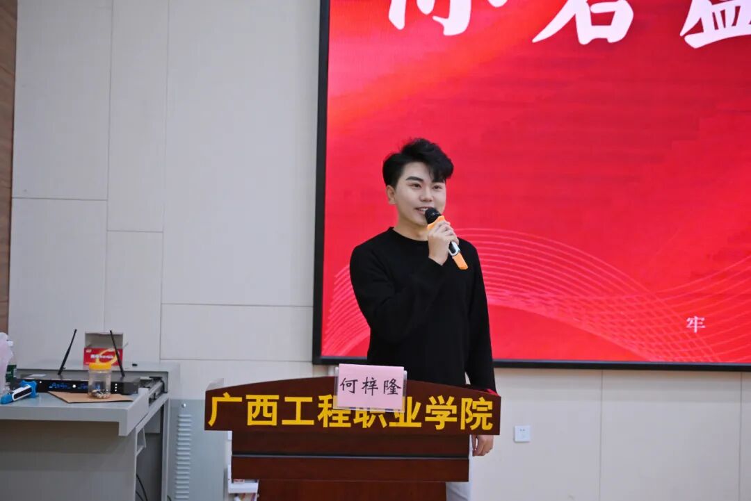 以榜样为灯,照奋进之路!2021级铁道与航空学院毕业生何梓隆重返母校,以《学长的成长感悟与初心传递》为主题,为学弟学妹们带来一场有温度、有深度的成长分享会。他以亲身经历诠释理想信念的力量,以奋斗故事传递青年担当。分享会上,他以朋友的身份围绕“初心坚守的成长力量”“感恩担当的青春答卷”等内容深入分享了自己的体会。他以实干笃行沉淀青春底色,用拼搏奋进书写成长华章,为逐梦途中的学弟学妹们树立了可学可鉴的榜样,点亮了指引方向的明灯。饮水思源,不忘来路。他衷心感谢广西工程职业学院这片沃土,始终以厚重的底蕴孕育人才,以宽广的胸怀滋养学子,为每一位追梦人搭建施展才华的舞台、铺就成长成才的阶梯。何梓隆真诚致谢:“感恩母校的悉心栽培与深切信任,愿广大青年学子皆能以榜样为帆,以信仰为舵,筑牢理想根基,脚踏实地求索,奋勇向前追梦,在时代浪潮中执笔挥毫,书写属于自己的璀璨青春华章。”