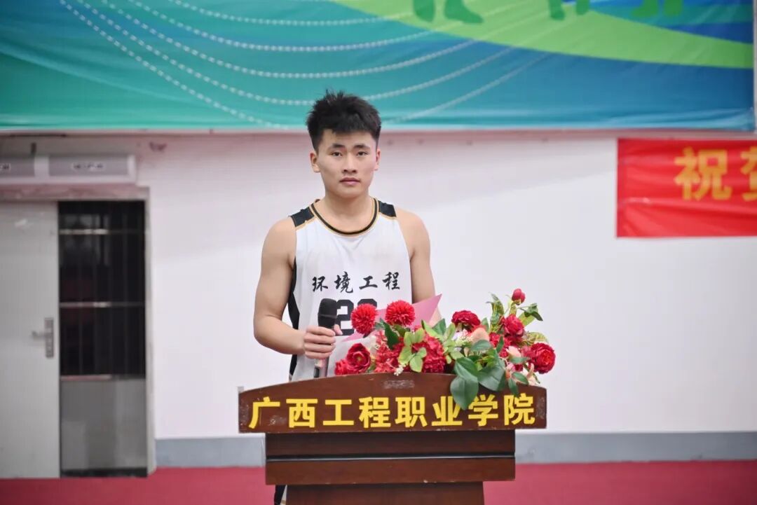 土木工程学院蔡小龙同学代表获奖运动员发言,他在发言中衷心感谢学校举办此次大赛和营造浓厚的比赛氛围,让我们得以追逐热爱、突破自我;感谢队友们并肩作战,以团结协作与坚守诠释 “不抛弃、不放弃” 的团队精神;感谢同学们的热情助威,你们的呐喊是我们前行的无穷动力。这场比赛让我们深刻领悟团队的意义,每一滴汗水、每一次反思都成为成长的珍贵印记。未来,我们将继续精进技艺、凝聚力量,不负期待。愿学校篮球氛围愈发浓厚,为更多热爱篮球的同学提供展示舞台,让青春活力在赛场尽情绽放!