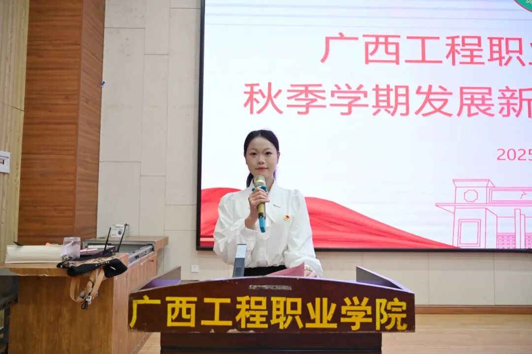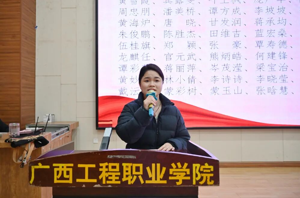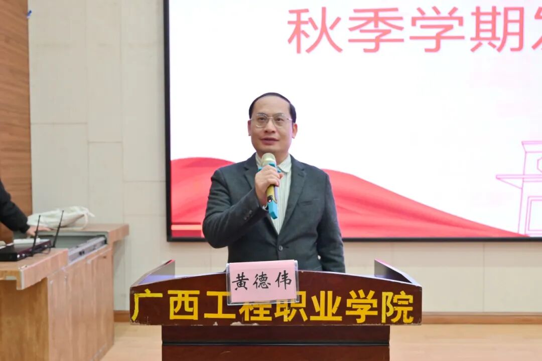 副校长黄德伟在讲话中,向新团员表达了热烈祝贺与殷切期许,并激励青年一代以昂扬奋斗姿态,在新时代的征程上展现青春作为。他向新团员提出三点要求:一是筑牢理想信念根基,牢记入团初心与誓言,坚定不移听党话、跟党走,把个人成长与国家前途命运紧密相连;二是深耕学业、积极实践,以创新思维攻坚克难,立志成长为堪当民族复兴重任的栋梁之才;三是涵养高尚品德,引领社会正气,用实际行动兑现 “请党放心,强国有我” 的青春承诺。讲话最后,他希望新团员们对标优秀、严于律己,在校园生活和社会实践中发挥模范带头作用,让团徽在拼搏中闪耀,让青春在强国建设的征程中绽放华彩。