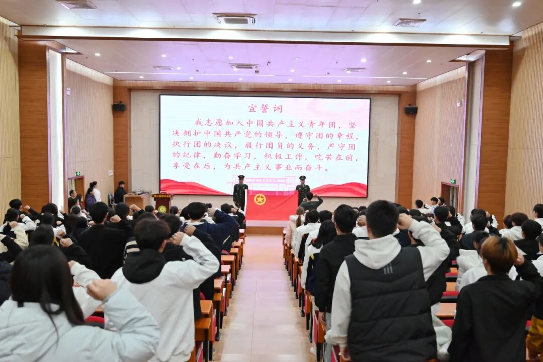 为深入学习贯彻习近平总书记关于青年工作的重要思想,切实筑牢青年团员的思想根基,传承共青团百年奋斗的红色基因,12月24日,学校团委在图文信息大楼一楼学术报告厅举行2025年秋季学期新发展团员入团仪式,引导新团员以青春之名赴时代之约,以昂扬姿态践行团员使命。