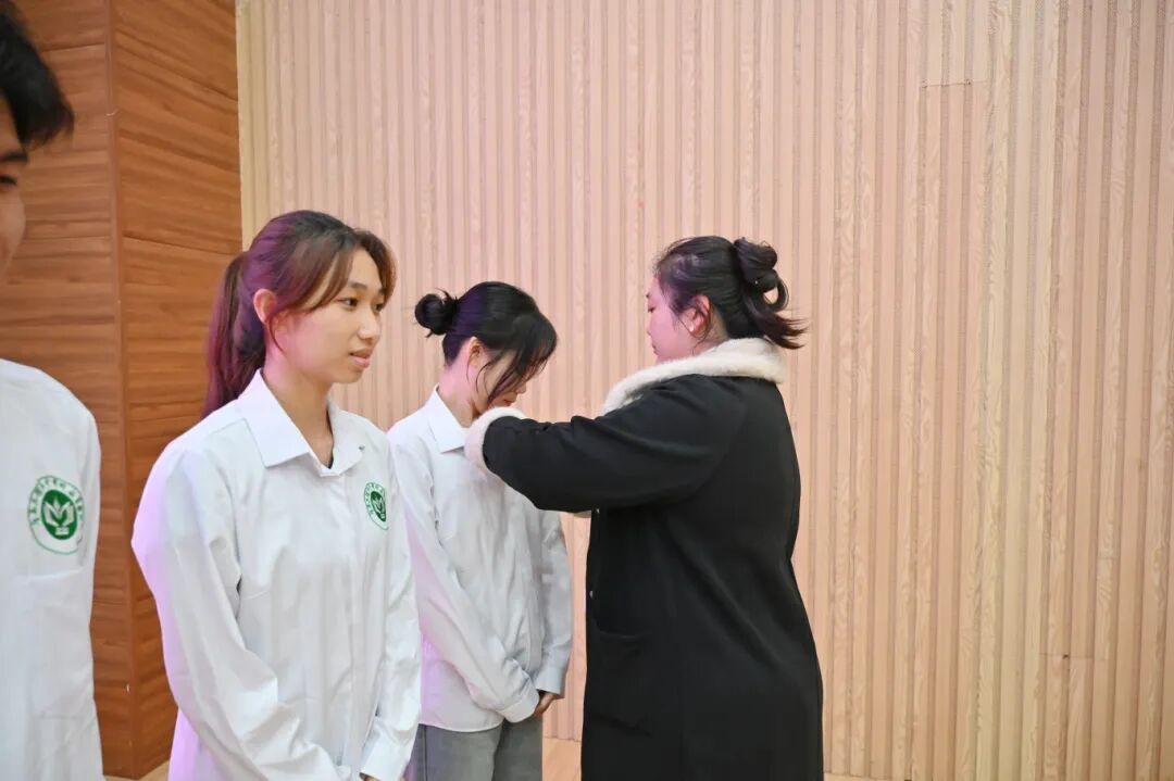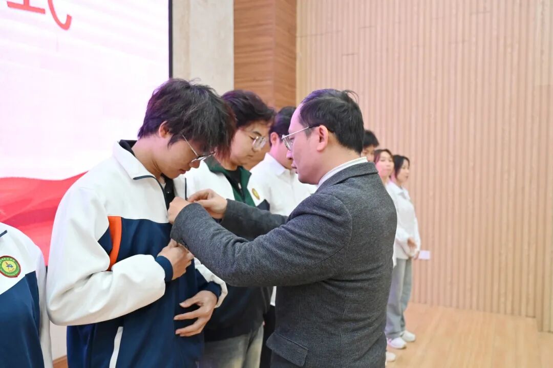 副校长黄德伟、团委副书记李丽清、各二级学院分团委书记及团委老师为新团员代表佩戴团员徽章。